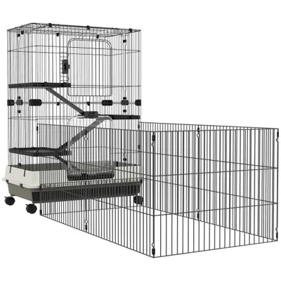 PawHut - Cage petits animaux avec 3 plateaux H.114 cm - noir